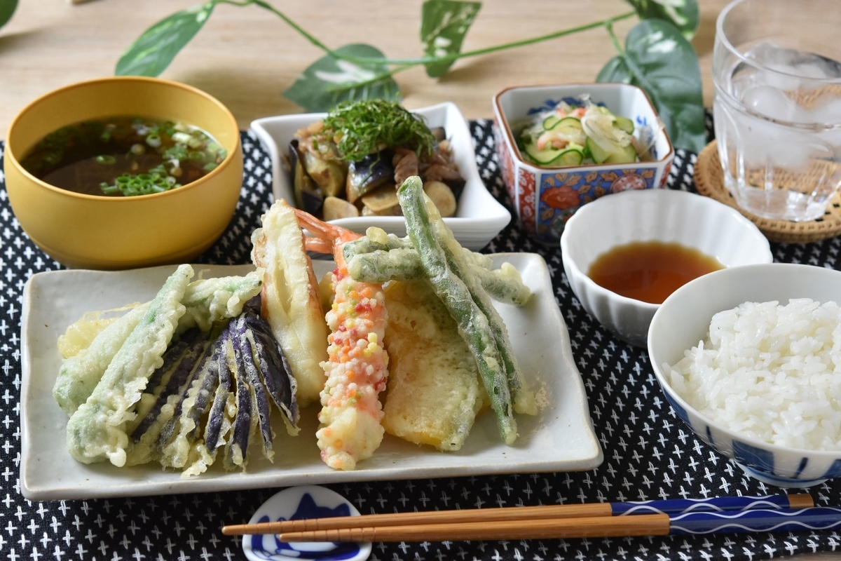 (えび・竹輪・玉ねぎ・茄子・かぼちゃ・オクラ・さやいんげん)